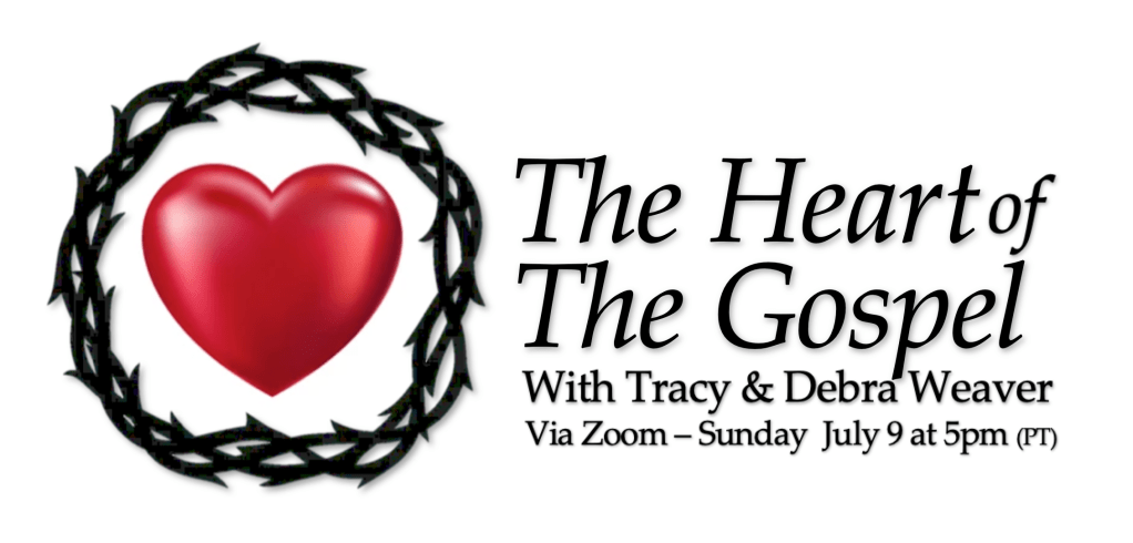 Join Tracy and Debra Sunday evening, July 9 at 5pm (pacific time) for a lively dialogue centered around the Heart of the Gospel. You will be refreshed in your spiritual walk with Jesus and gain more confidence to the gospel with others. We look forward to seeing you! -TD